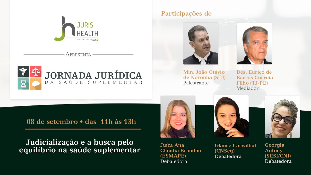A iniciativa é apresentada pelo JurisHealth, plataforma do IESS voltada para informações jurídicas e regulatórias da saúde suplementar. O evento pode ser acompanhado pelo site do IESS e pelos canais do You Tube do IESS e do Conjur.