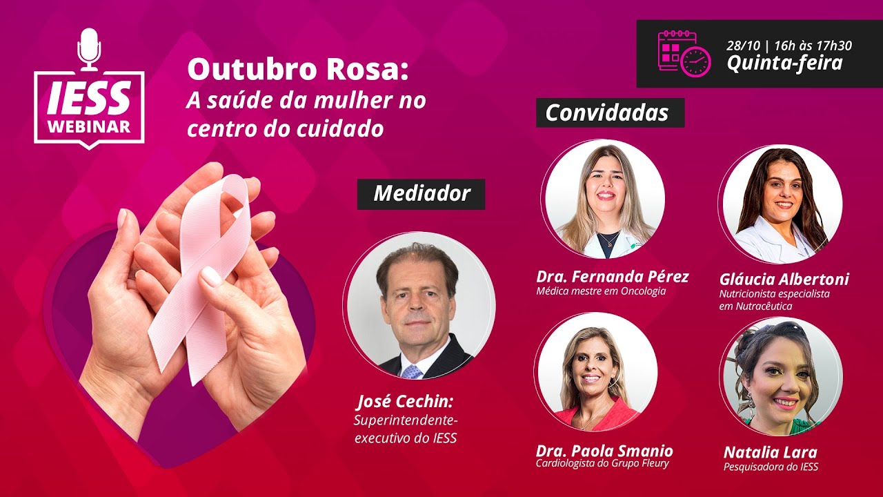 Com apresentação do superintendente executivo do IESS, José Cechin, o webinar conta com a mediação de Maria Eugênia Buosi, sócia-fundadora da Resultante ESG e com os convidados Patricia Bueno, gerente de Sustentabilidade na NotreDame Intermédica e Tomás Carmona, diretor de Relações Institucionais e superintendente de Sustentabilidade na SulAmérica.