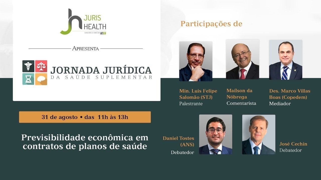 Os eventos anteriores da Jornada Jurídica da Saúde Suplementar podem ser acessados pelos canais do IESS no Facebook e YouTube e do ConJur. A “Jornada Jurídica da Saúde Suplementar” é uma iniciativa do IESS em conjunto com o Copedem (Colégio Permanente de Diretores de Escolas Estaduais da Magistratura) e tem como parceiro de mídia a plataforma Consultor Jurídico (Conjur). Você pode ver mais detalhes aqui.