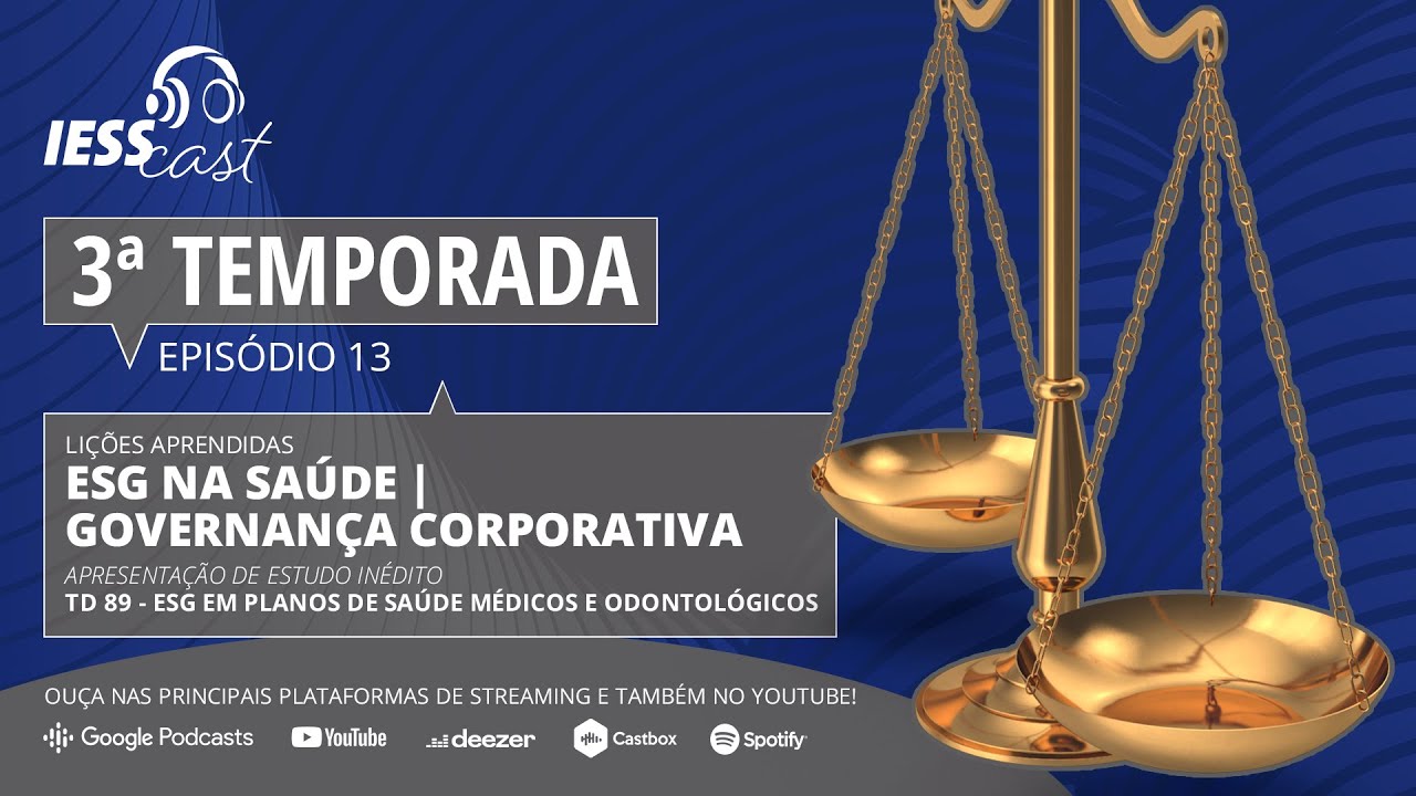 O 13º episódio desta 3ª temporada do IESSCast já está disponível nas principais plataformas de áudio e também no canal do Youtube do IESS. O tema abordado é a governança corporativa dentro do conceito ESG na saúde.
