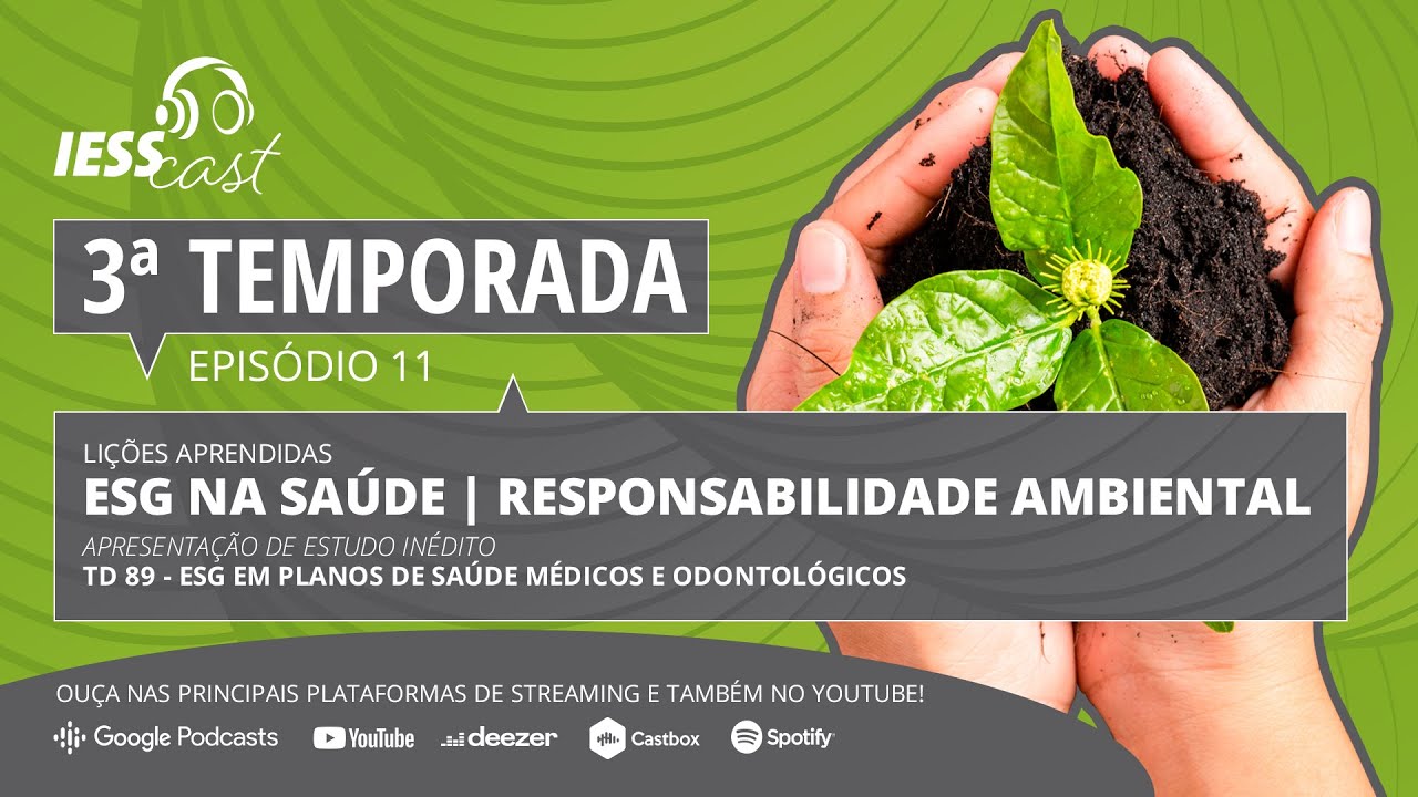 Hoje, em sua terceira temporada, o IESSCast inicia uma sequência de três programas sobre os conceitos ESG na Saúde. O 11º episódio é o primeiro deles, e aborda o tema com foco no conceito de responsabilidade ambiental, um dos eixos da sigla ESG, que vem do inglês Environmental, Social and Governance.