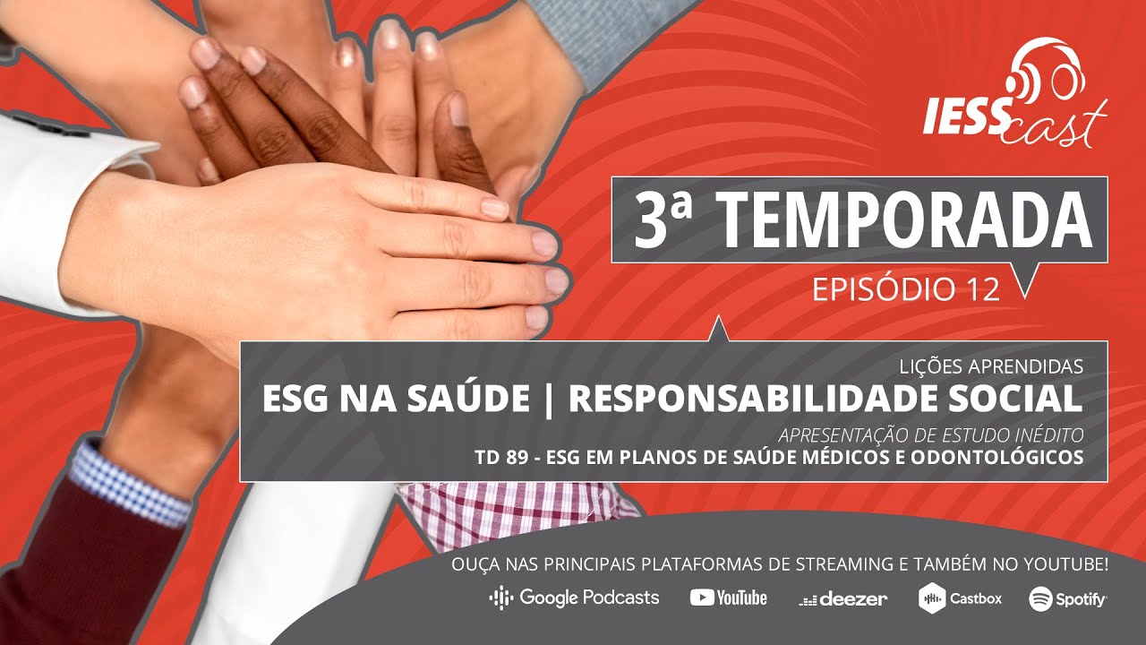 Já está disponível nas principais plataformas de streaming de áudio e no canal do Youtube do IESS o 12° episódio da 3ª temporada do IESSCast. Com apresentação do pesquisador do IESS, Bruno Minami, o programa destaca o tema a responsabilidade social dentro do conceito do ESG na saúde.