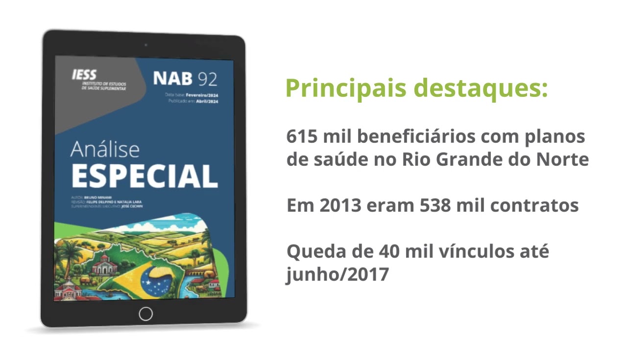De acordo com o superintendente executivo do IESS, José Cechin, as informações e dados apresentados no estudo refletem a preocupação e busca para os devidos cuidados com a assistência à saúde no estado. “Nota-se uma evolução significativa da população do Rio Grande do Norte no acesso aos serviços da saúde suplementar em uma região historicamente desafiadora em termos de infraestrutura desse segmento tão importante”, afirma.